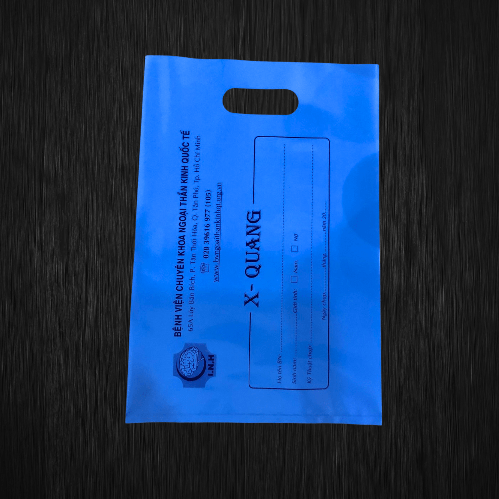 Túi đựng X-Quang của Bao bì Đức Phát có thể được in ấn logo, tên thương hiệu, hoặc các thông tin liên quan như địa chỉ, số điện thoại của bệnh viện hoặc phòng khám. Công nghệ in ấn hiện đại, bao gồm in lụa và in ống đồng, được sử dụng để đảm bảo hình ảnh và chữ viết trên túi sắc nét, bền màu, không bị phai trong thời gian dài. Việc in ấn thông tin không chỉ giúp quảng bá thương hiệu của cơ sở y tế mà còn mang lại sự chuyên nghiệp trong mắt bệnh nhân, tạo cảm giác tin cậy và chu đáo.